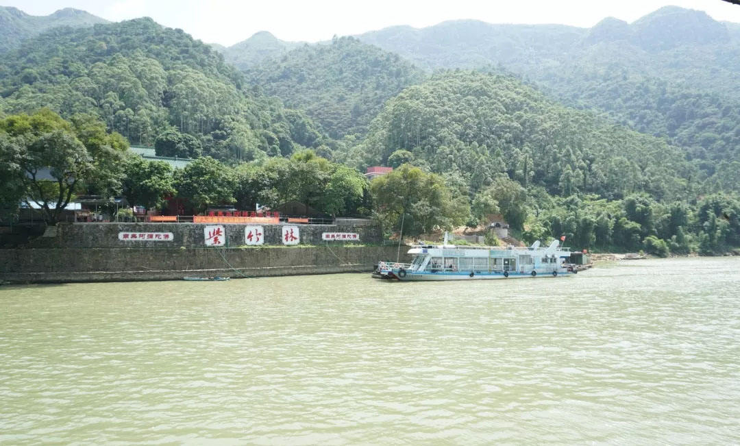 到了清遠(yuǎn)不能不游江,游江不能不到小北江。在清新縣源潭鎮(zhèn)的江口碼頭,一溜兒地排著大大小小的漁船供游客挑選,豐儉由人。盡管路途長達(dá)三個多小時的車程,大家還是一路高歌,只是肚子確實(shí)已經(jīng)餓的呱呱叫了。第一站大家在小北江的游船上品嘗當(dāng)?shù)靥厣撕透魇胶吁r,穿梭在兩岸的竹林之中,景色秀麗,別有一番風(fēng)味。