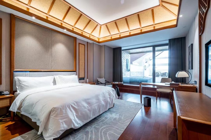 酒店位置依山傍水、以山為鄰、以水為友、讓人遠離城市喧囂,沉浸在人與自然和諧共生的世外桃源中。