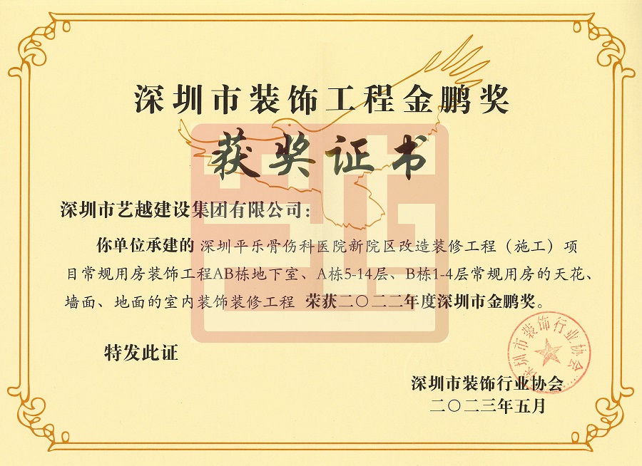 榮獲2022年度深圳市裝飾工程“金鵬獎”,為我司榮譽錦上添花!
