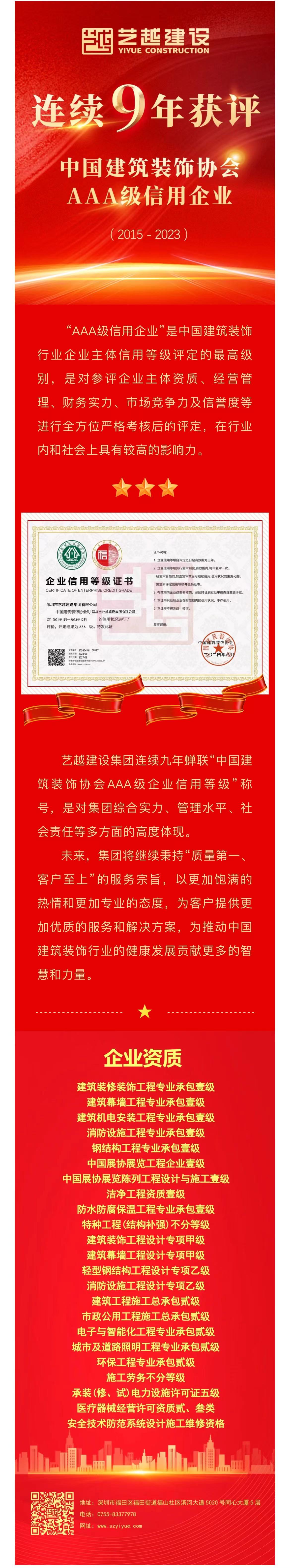 藝越基石 | 連續(xù)九年!獲評中國建筑裝飾協(xié)會AAA級信用企業(yè)稱號!