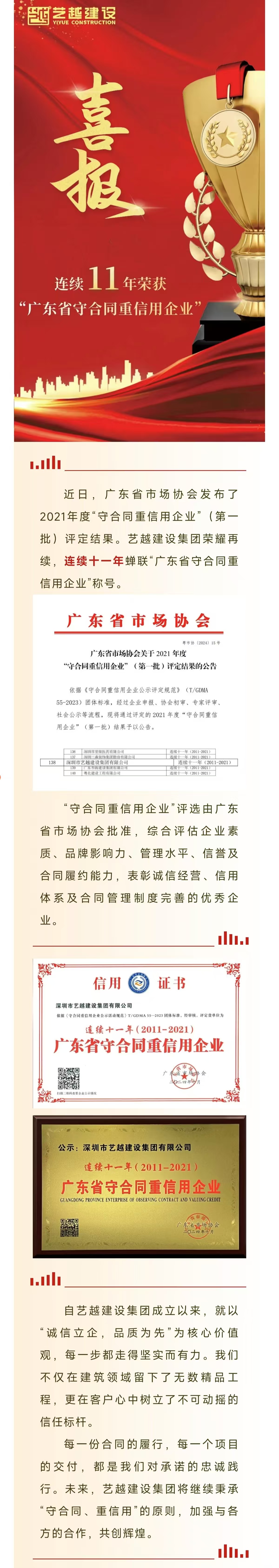 藝越基石 | 連續(xù)多年榮獲 “廣東省守合同重信用企業(yè)”稱號(hào)