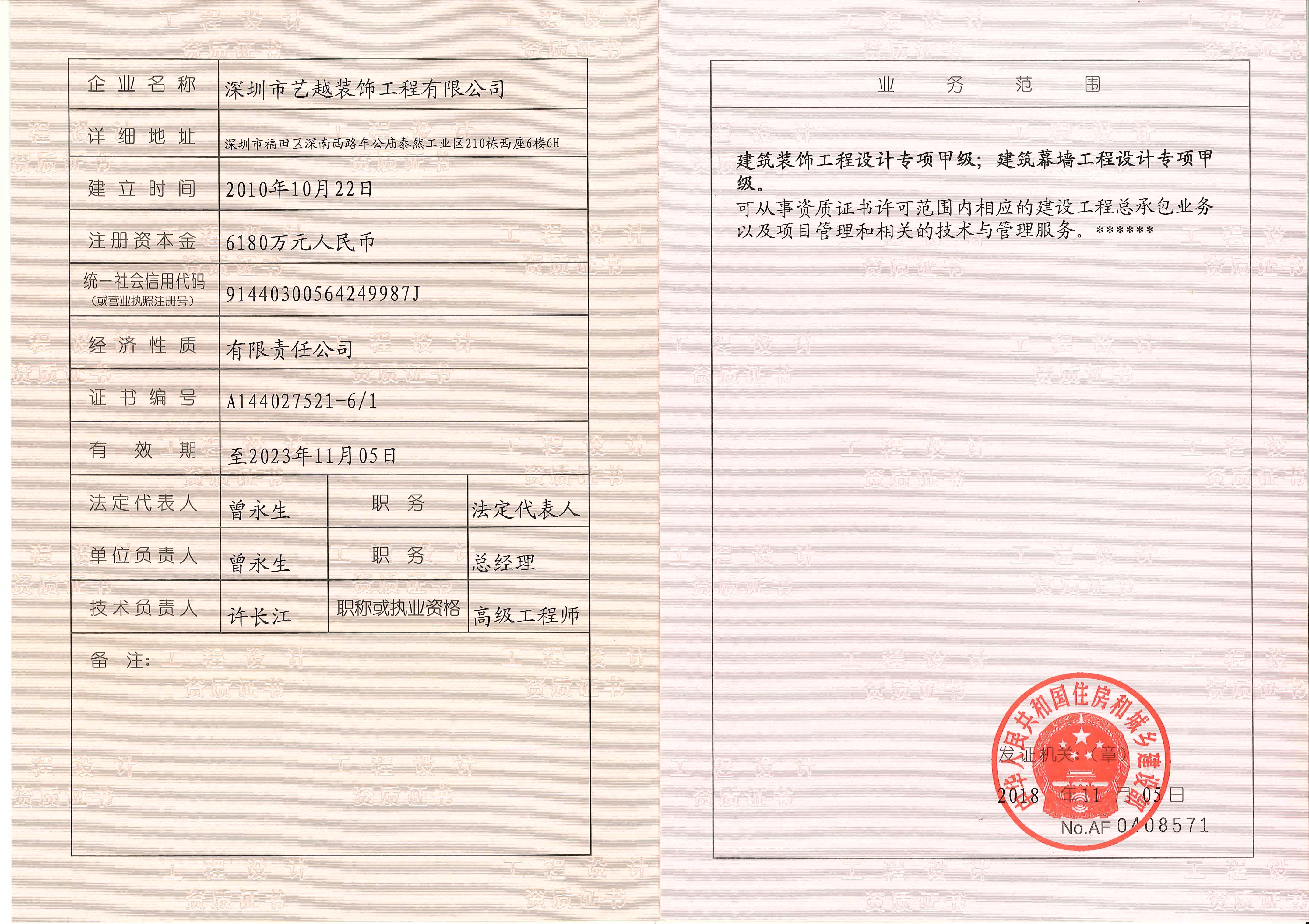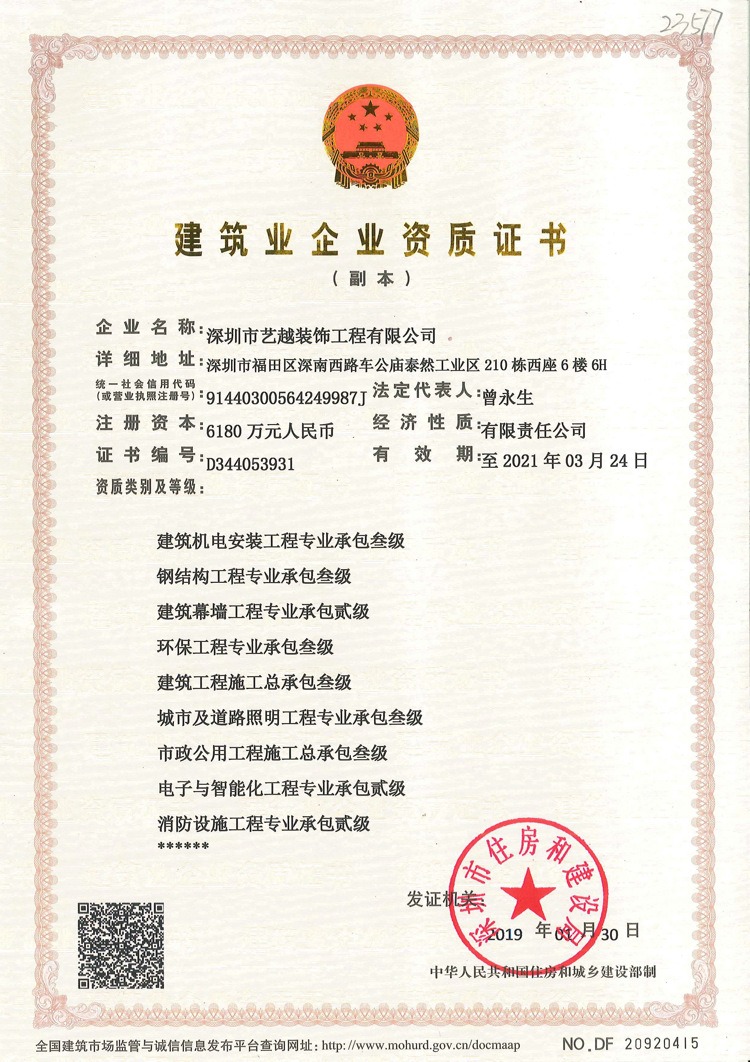 ??? 原深圳市藝越裝飾工程有限公司,已全新升級為深圳市藝越建設(shè)集團,從2019年06月27日起公司名稱正式變更為:深圳市藝...