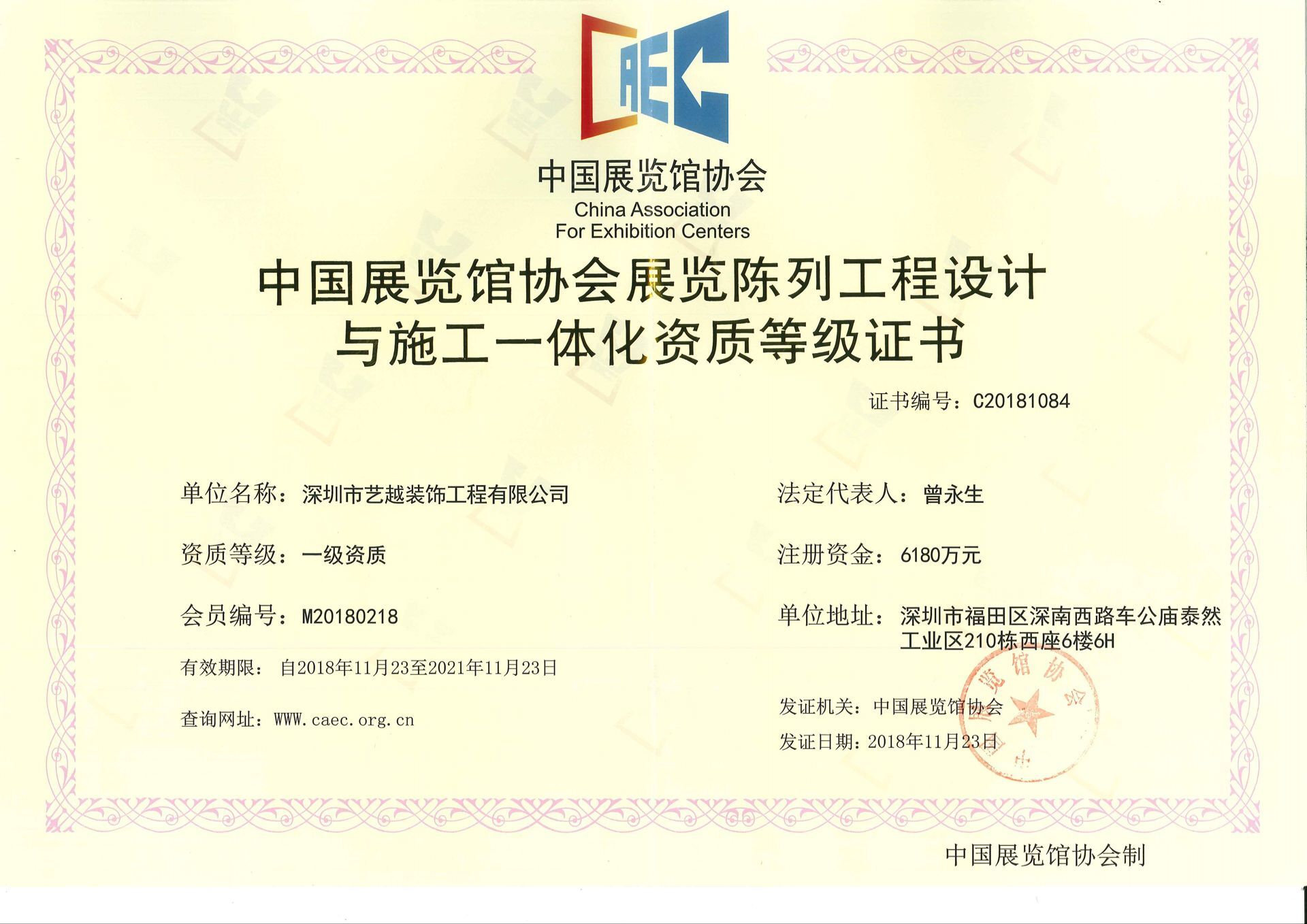 ? 經(jīng)過全體同仁的不懈努力,藝越裝飾成功取得了中國展覽館協(xié)會頒發(fā)的展覽陳列工程設(shè)計與施工一體化壹級資質(zhì)。感謝行業(yè)領(lǐng)導...